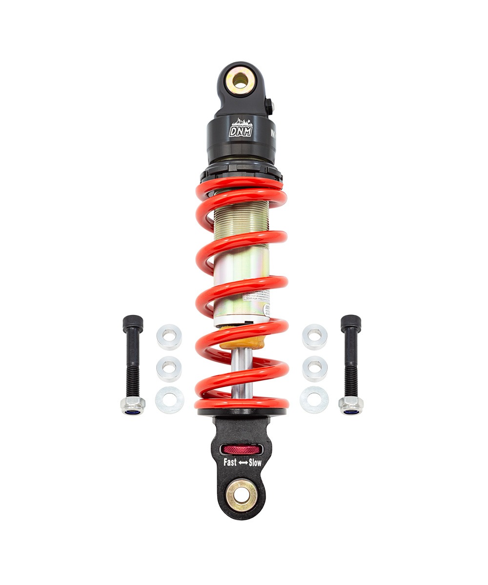 Improve your ride and handling with these high quality shocks. DNM has been an integrated part of the suspension industry for more than 40 years. Their goal has always been to supply OEM and the aftermarket with high performance suspension technology at an affordable price. Additionally we include a new set of 12.9 grade bolts with nylon locking nuts and CNC spacers to replace the weak OEM shock pins that hold it in place.
