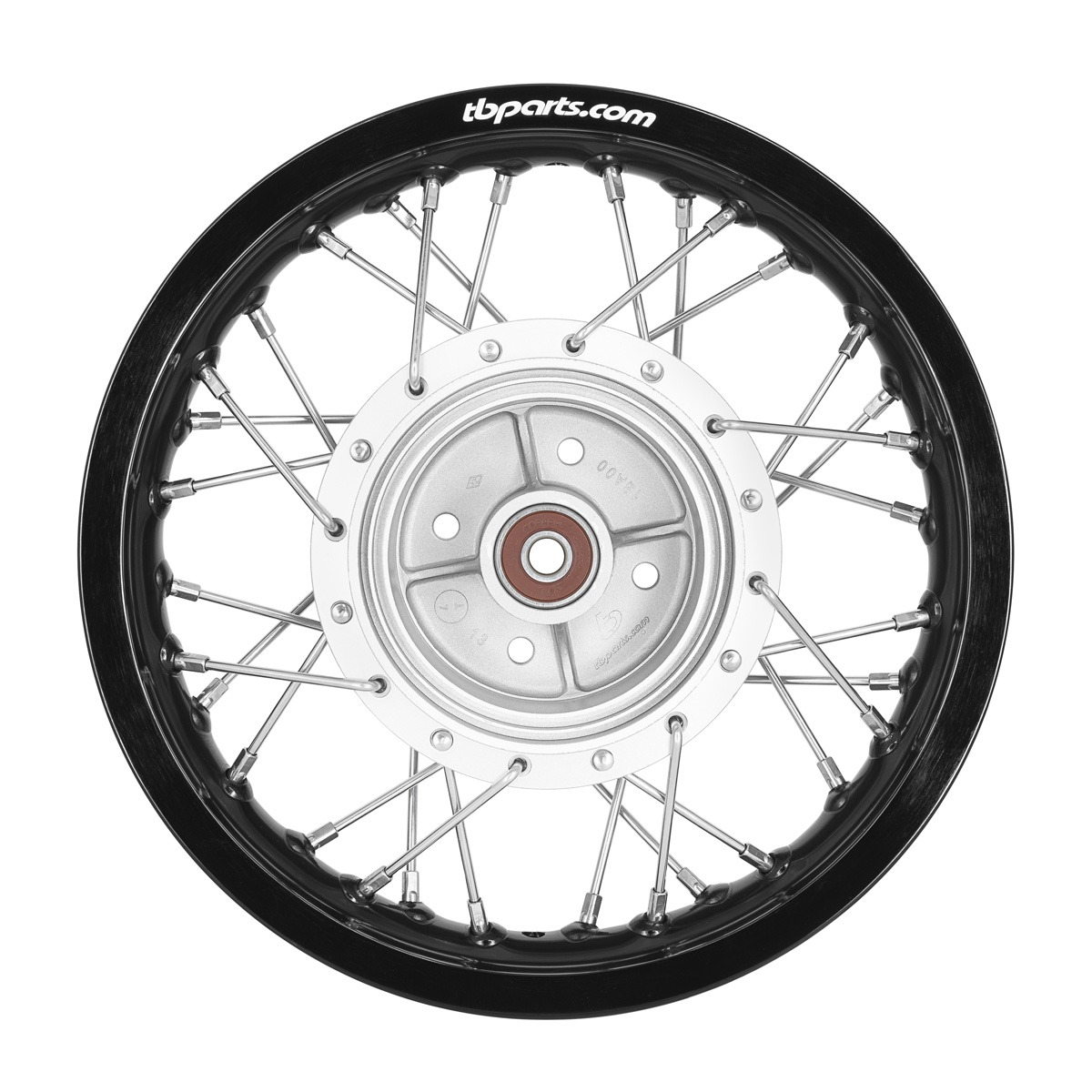 Here at TBparts we wanted to bring a new high quality and affordable option to the market. So, our wheels come ready to run from bearings to the rim! Starting out, we had the factory install high quality NTN bearings with the proper spacer behind/between them. Next, is our OEM style “bolt in place” cast aluminum hub painted in silver to match the OEM brake panel (our TB logo is also cast in).