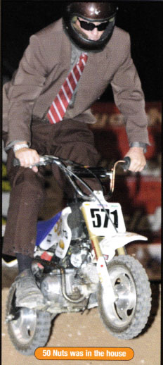 Then came the Stock 50cc class – one of the most ridiculous looking races of the night. This race was for Stock XR/CRF50s with only minimal modification allowed. The majority of racers used the paddle technique off the line, practically running with their minis to help get going.