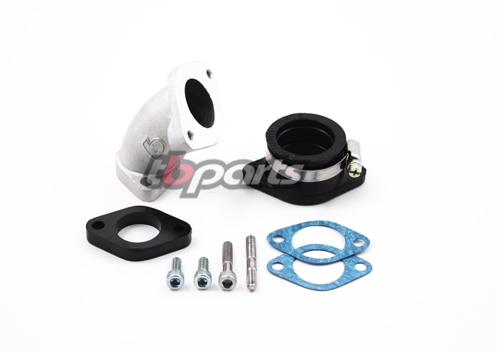 Intake Kit for use with 26mm and 28mm Carbs (Mikuni VM26, OKO 26, and our 28mm carb). This is a rear facing intake for use on our Race Head V2, YX150/160, Zongchen ZS155 or similar style engines (that use KLX110 style cylinder heads).