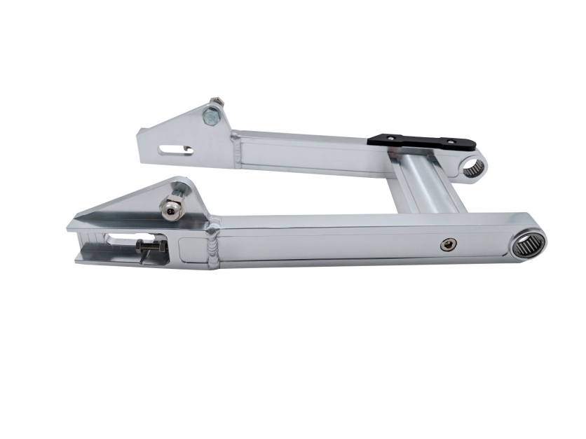 Its a very high quality aluminum swingarm that increases strength and improves handling on the Z50. This new version is better suited for pavement racing or backyard pitbike fun and you don’t need to switch to a longer front suspension (your OEM front end is fine with this swingarm). Unlike many other similar looking Z50 swing arms on the market this one uses solid billet aluminum sections, the pivots use bearings instead of the stock type rubber bushings, and it was purposely designed for adult abuse. Please compare closely to the competitors. These are definitely not the cheaper poor quality hollow aluminum Chinese $75.99 ebay specials you see around that will snap after a couple jumps.