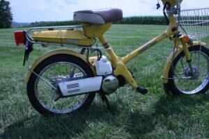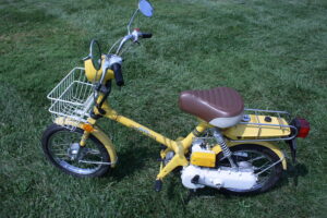 1978 Honda Express NC50 – $750.00 OBO – Parakeet Yellow, 2-Stroke, 582 miles. Complete bike in very good condition for its age with the optional front basket. The airbox is intact which is unusual as they are always broken or missing on these models. It also has hard to find New Old Stock tires (with the correct pattern). It runs well but will need a new battery. No title.